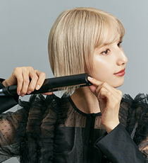 くしで全体をとかし前髪を薄く引き出しながらはりつける