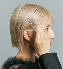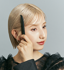 耳横の後毛を少し引き出し手に余ったグリースゼリーをなじませる